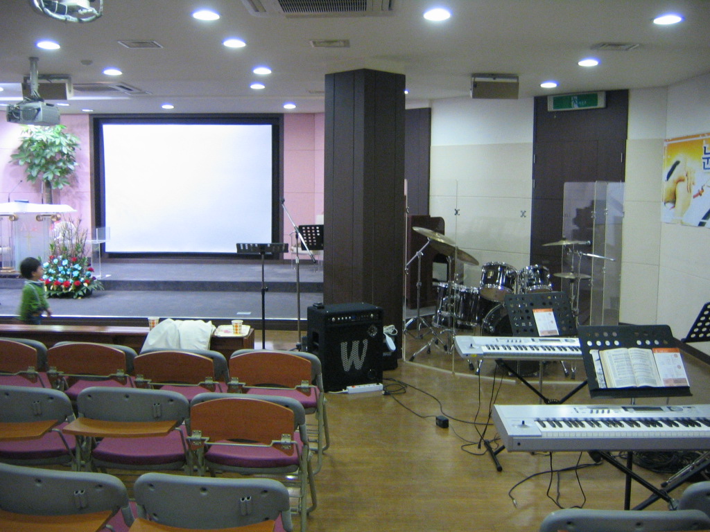 상가 교회들의 공통된 특징인데..... 천정이 낮다는 점이 유리하게 작용했습니다.