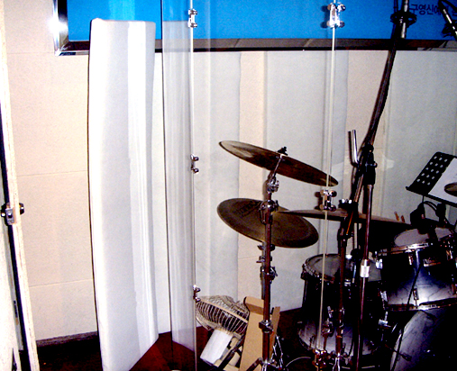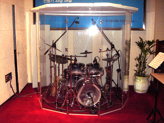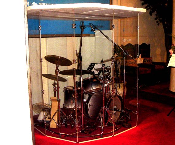 드럼 연주자 출입구쪽에는 뒤에 흡읍판을 높게 하여 문처럼 열었다 닫았다가 할수 있도록 하였습니다.
