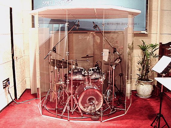 저희 교회는 기존에 드럼쉴드 LS-6-7제품을 사용하고 있었다가 흡음판과 함께 XLS 7-7 제품으로 교체하였습니다.