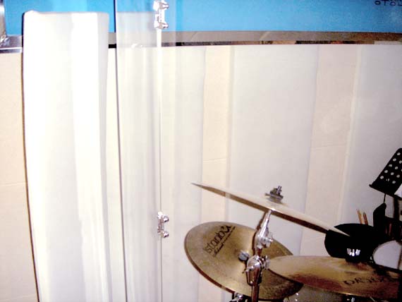 아시겠지만 차음과 흡음은 많은 차이점이 있습니다. 드럼쉴드를 기본으로 설치하면 차음효과가 있지 흡음은 되지 않습니다.