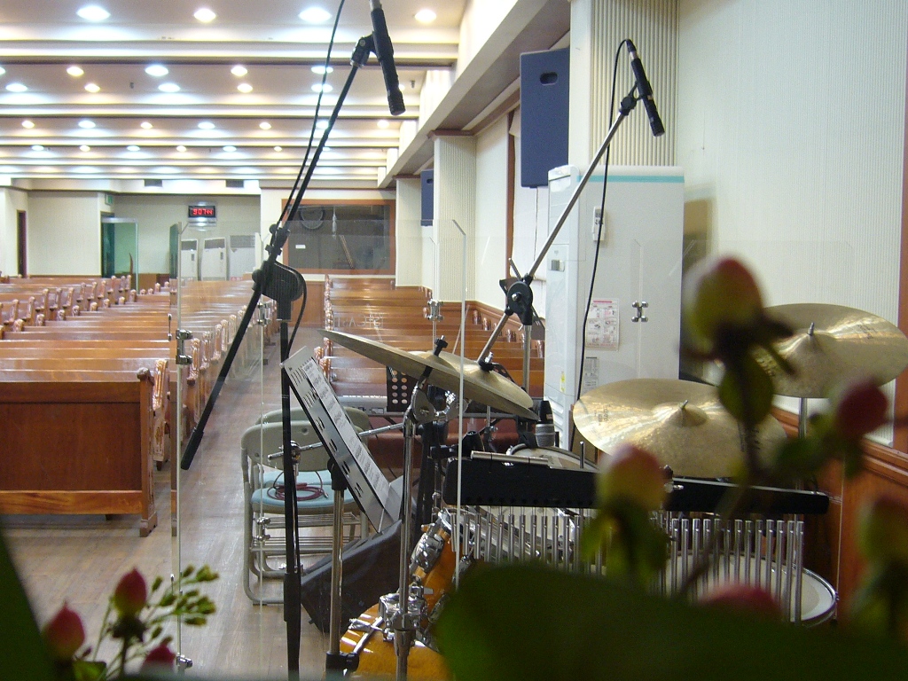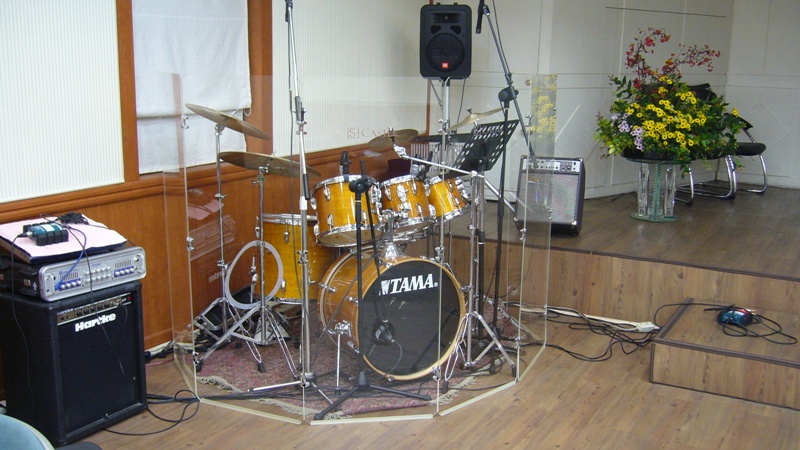 드러머가 없어서 설치후 테스트는 하지 못했으나 드럼 뒷편으로 화분과