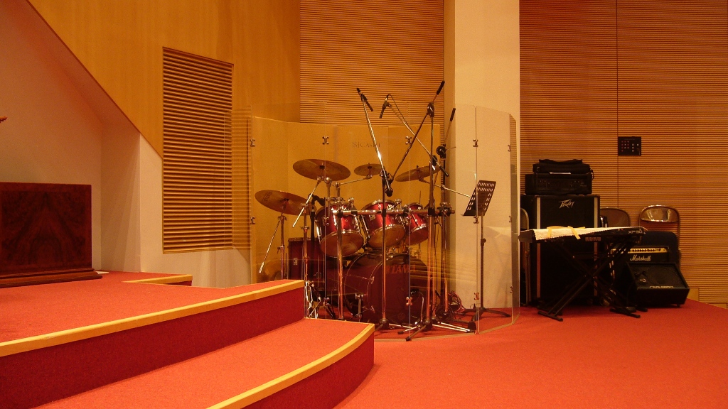 흡음판넬의 색도 교회 내부 마감재 색과 잘 어울려 보기에도 좋았습니다.