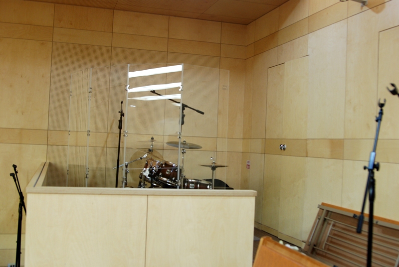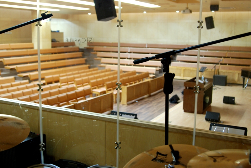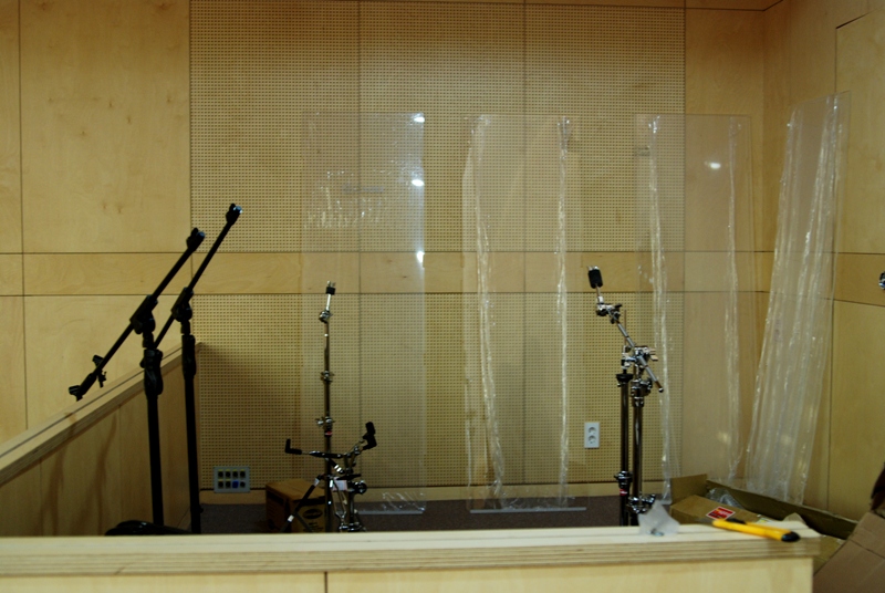먼저 드럼 셋팅하고 쉴드 설치하였는데 사진으로 보시는 것 처럼 악기 반주팀의 공간을
