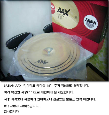 SABIAN AAX 리미티드 에디션 18"추가 팩(신품)입니다.