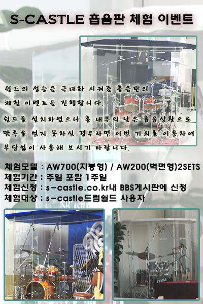 S-CASTLE의 흡음판넬을 무료로 체험하실 수 있는 이벤트를 진행합니다.